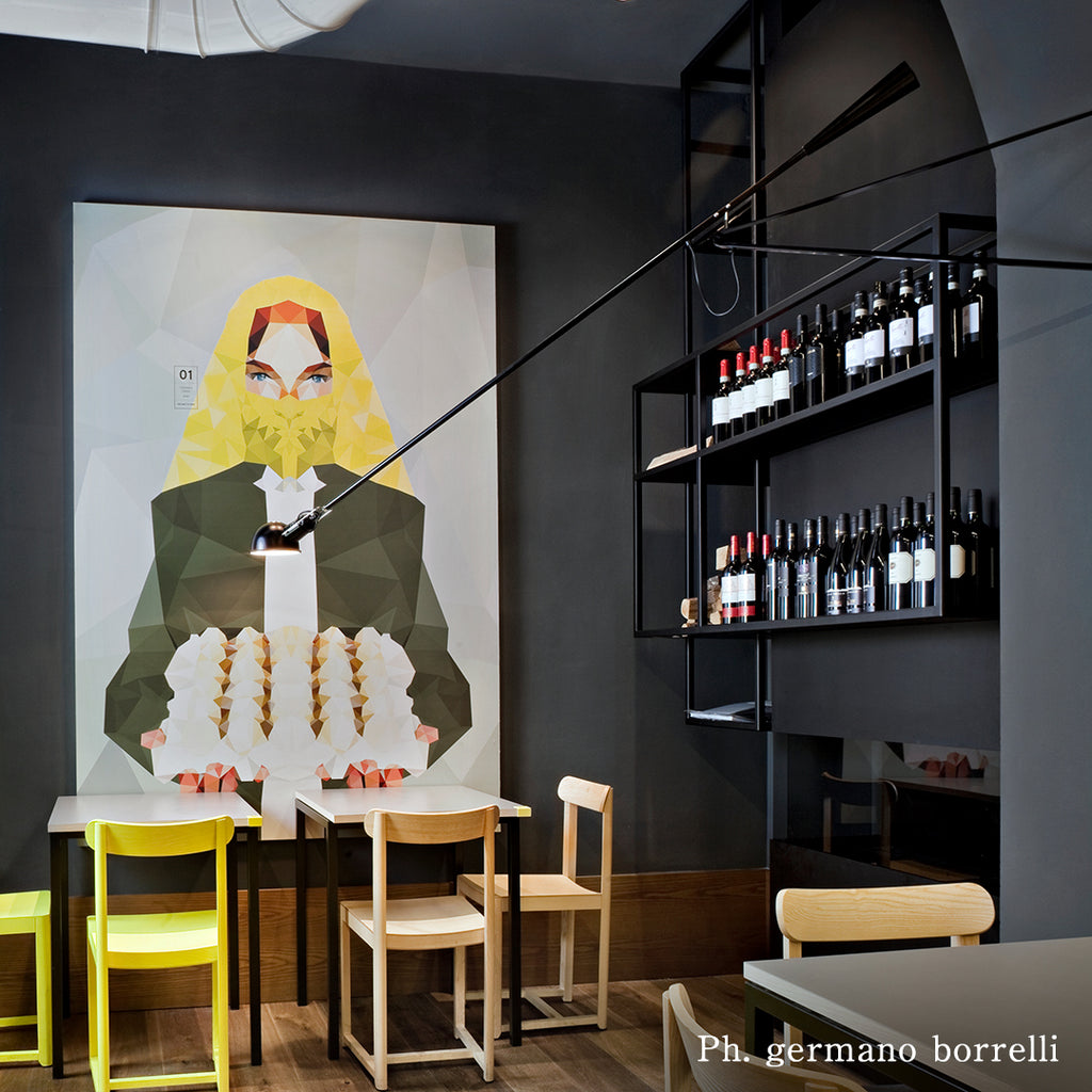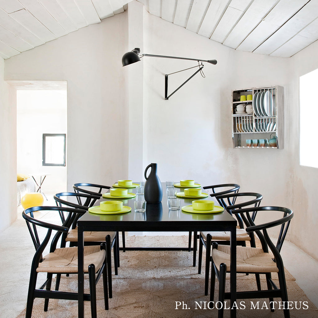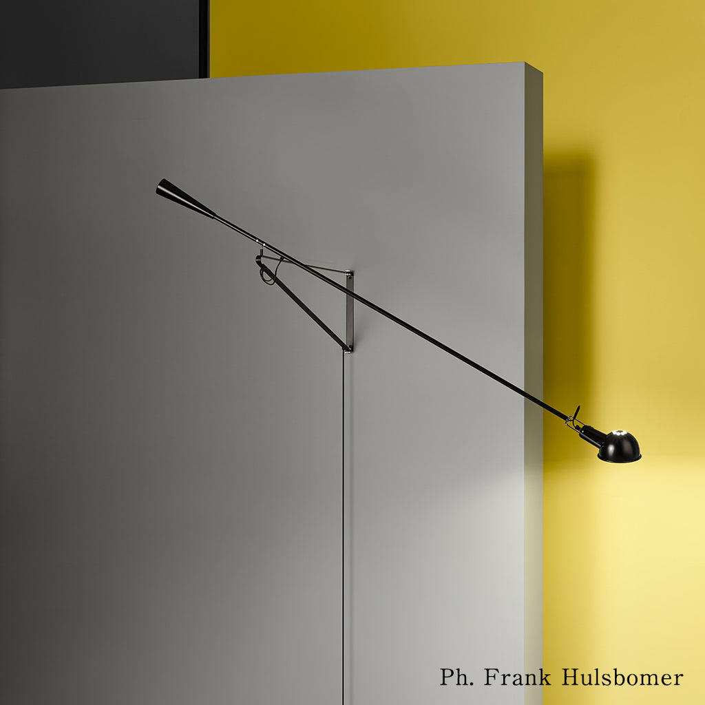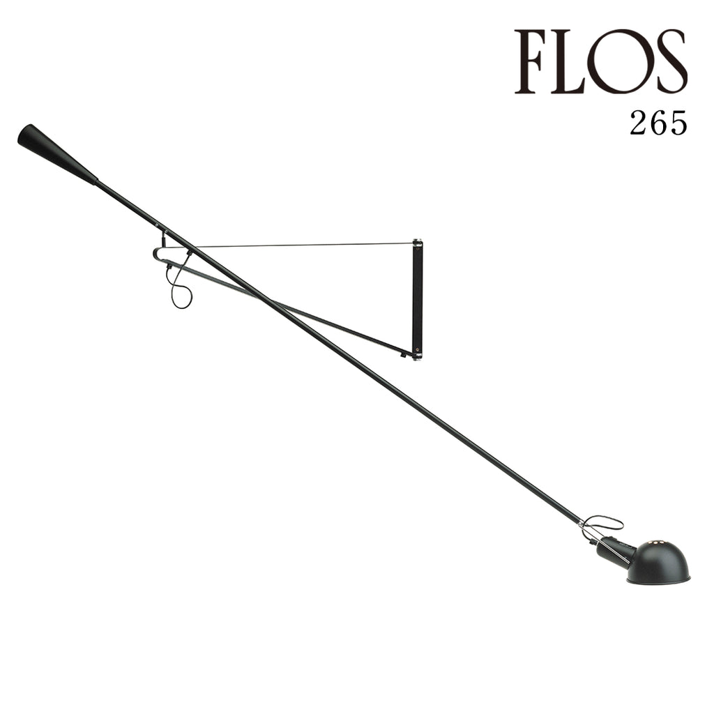265は、1973年の発売以来、広く愛され続けている傑作照明の一つです。アームについた重りでバランスを取る構造で、ブラケット(壁に取り付ける三角形の枠)は160度可動し、さらにアームも上下左右自由に高さを変えることができる機能的なプロダクトです。