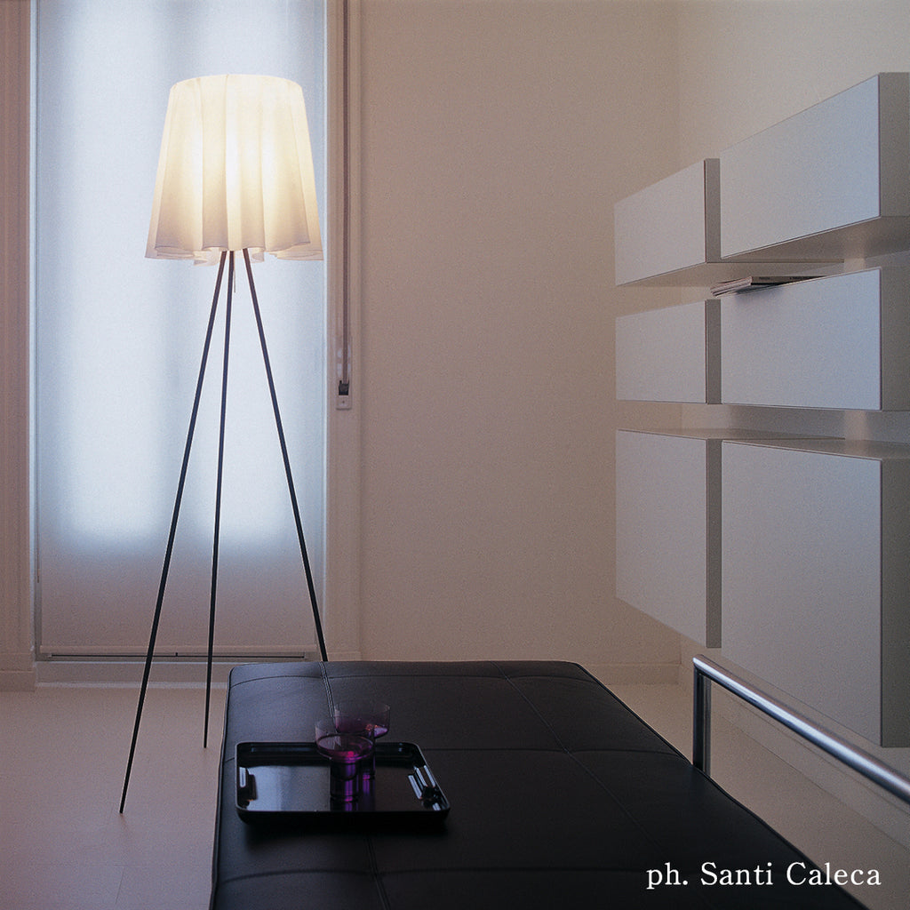 ロジー・アンジェリスは、フィリップ・スタルクのデザインしたフロアスタンドとして世界中で人気を呼んでいます。布製のセードの襞を透かして美しい光が広がります。シャープな3本の支柱の独特なラインがいかにもスタルクらしいセンスを感じさせます。