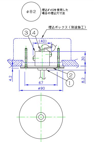 ・埋込ボックス(天井裏別途施⼯)に対応。(取付ネジピッチ:67mm)