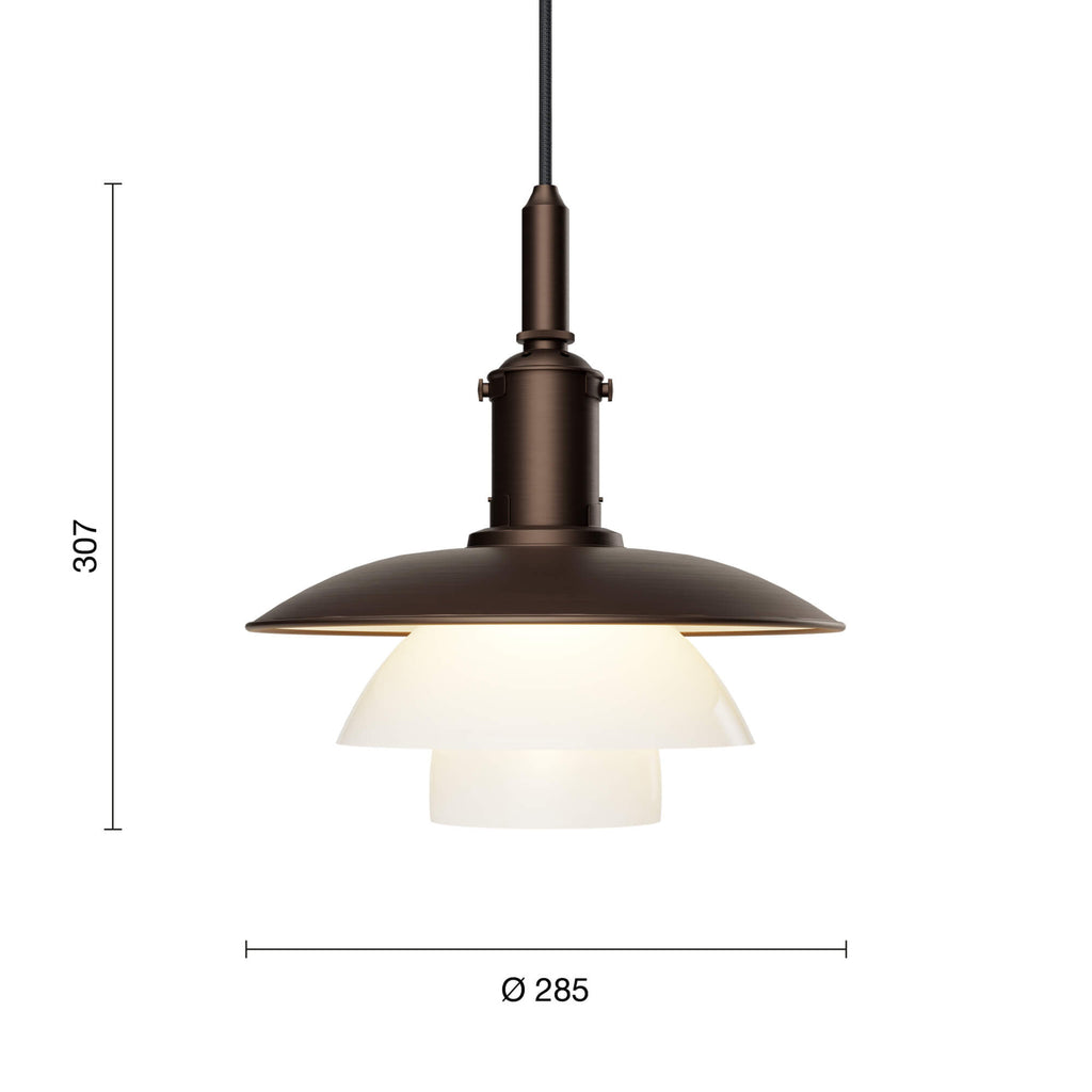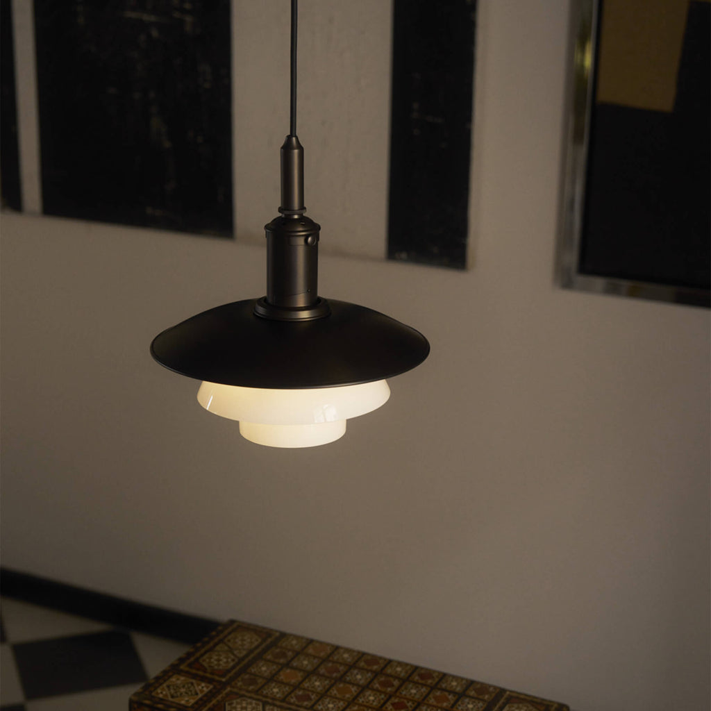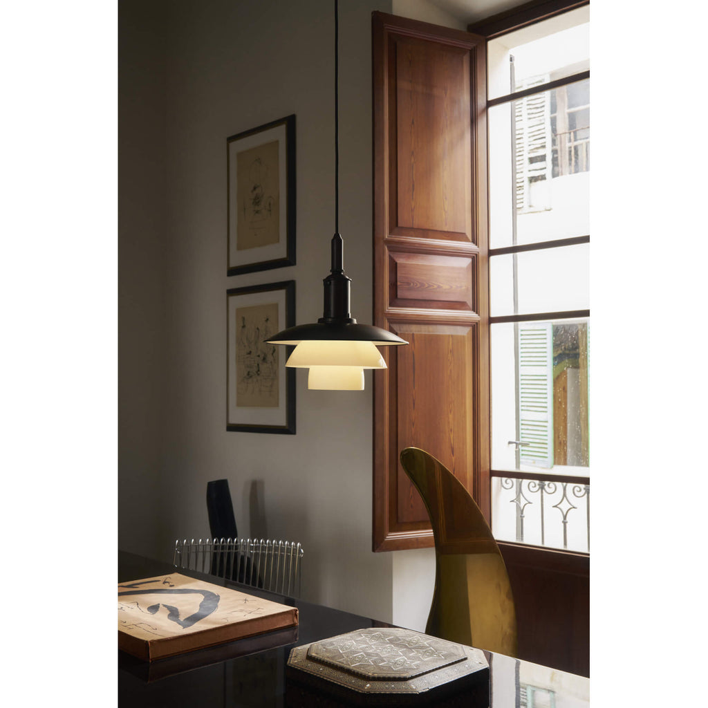 Poul Henningsen(ポール・ヘニングセン)が生み出した反射性3層シェードシステムを受け継ぐ、PH 3/3 Aged Brass Opal ペンダントランプ。