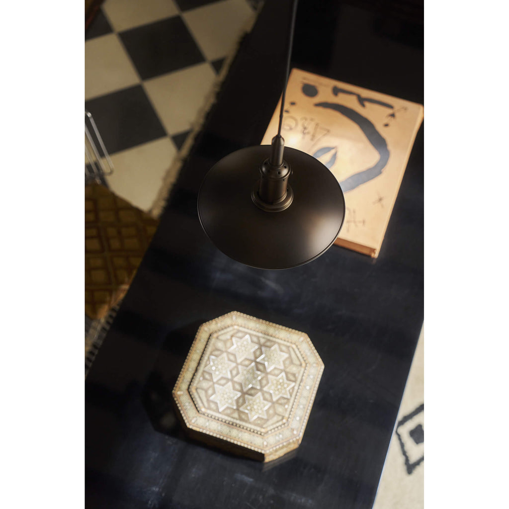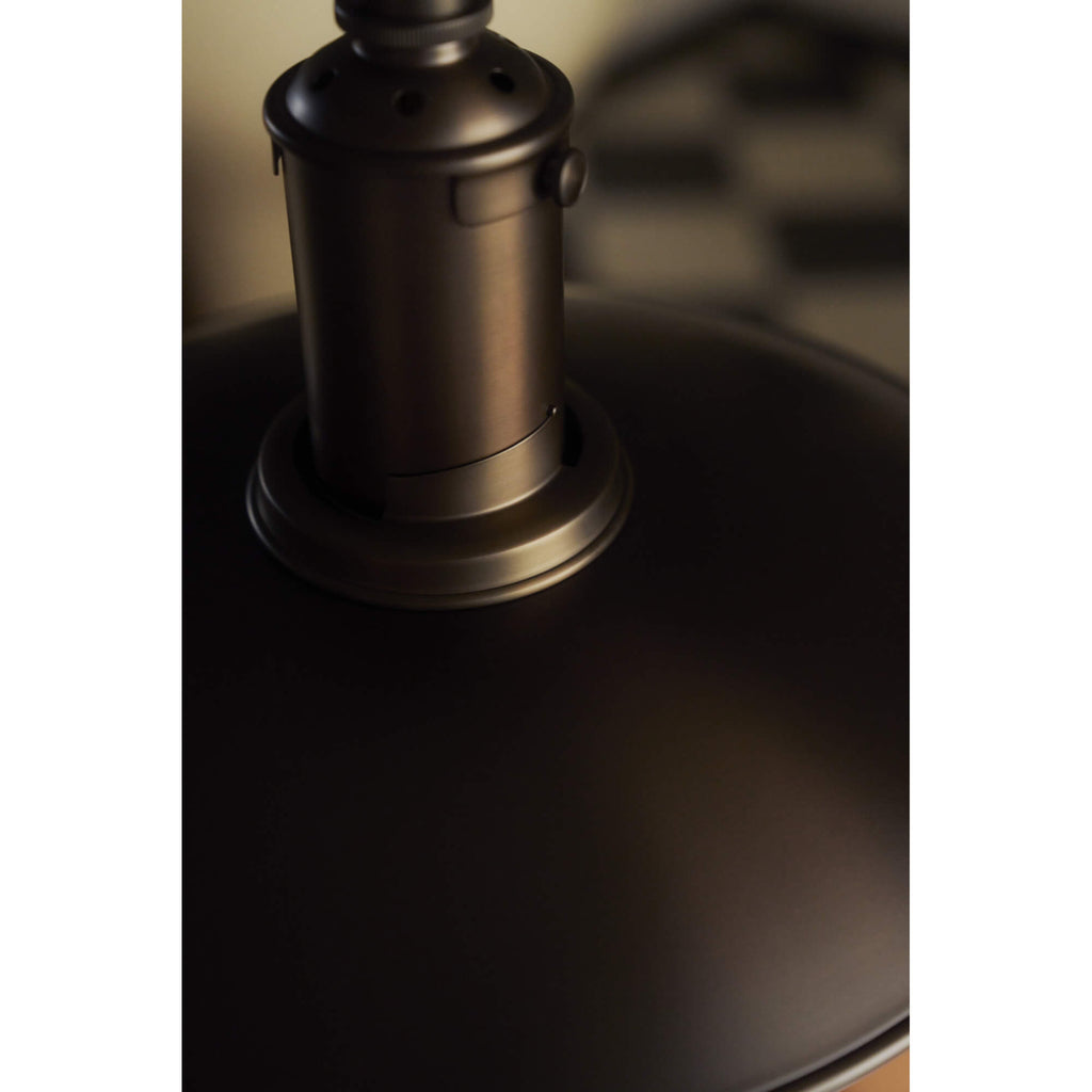 美しいダークブラウンのラッカー塗装を施したエイジド真鍮仕上げは、1920年代のオリジナルPHランプを想起させる佇まい。
