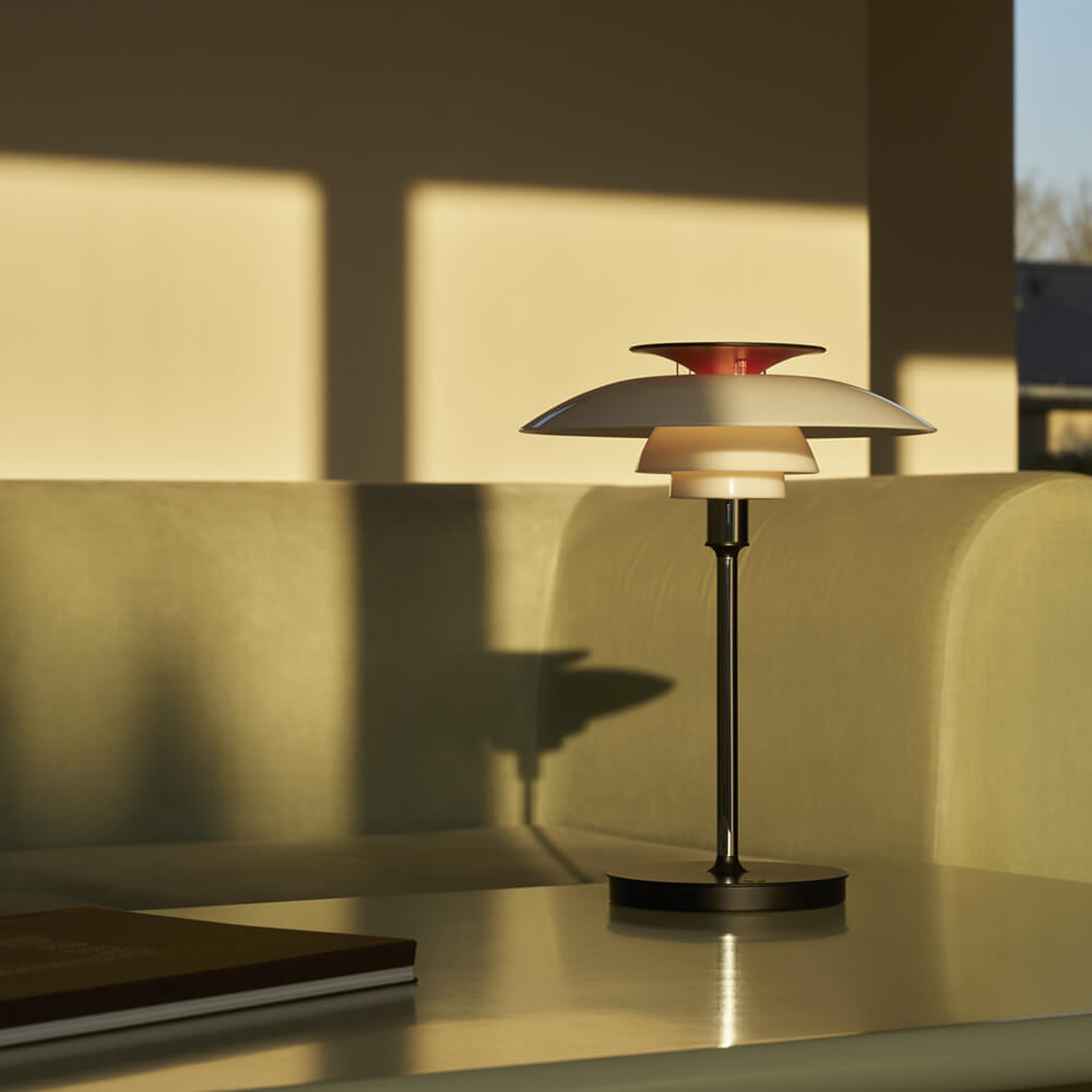 PH 80ポータブルランプは、機能性と美しさを兼ね備え、温かみのある拡散光で快適な間接照明を実現し、家庭にもオフィスにも最適です。