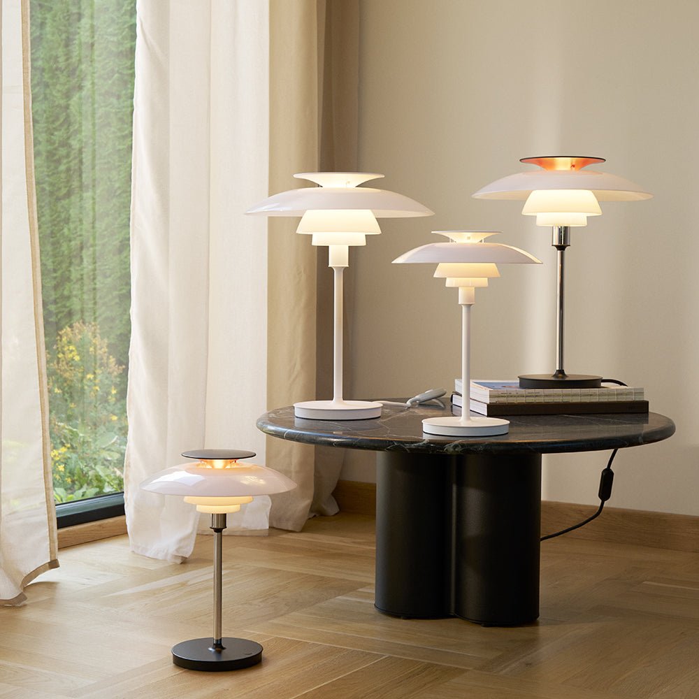 PH 80ポータブルランプは、機能性と美しさを兼ね備え、温かみのある拡散光で快適な間接照明を実現し、家庭にもオフィスにも最適です。