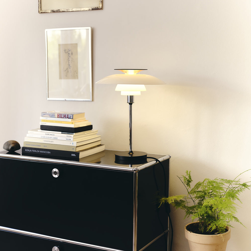 PH 80 テーブルランプは、機能性と美しさを兼ね備え、温かみのある拡散光で快適な間接照明を実現し、家庭にもオフィスにも最適です。